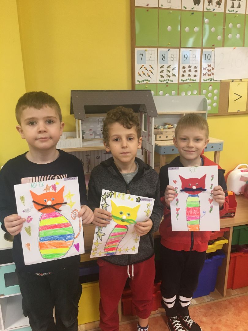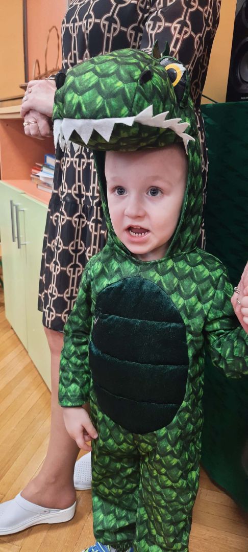 Puchatki w tym tygodniu „przenoszą się” w świat dinozaurów. Tematyka o życiu dinozaurów wywołała wśród dzieci duże zainteresowanie; poznaliśmy nazwy wybranych dinozaurów, oraz dowiedzieliśmy się , kiedy żyły i czym się odżywiały i tak np. wiedzą,że tyranozaur miał najsilniejsze szczęki a triceratops posiadał rogi. Dzieci przyniosły z domu figurki dinozaurów, oraz z zaciekawieniem słuchały bajek o dinozaurach. Wykonaliśmy dinozaura z papierowego talerzyka.