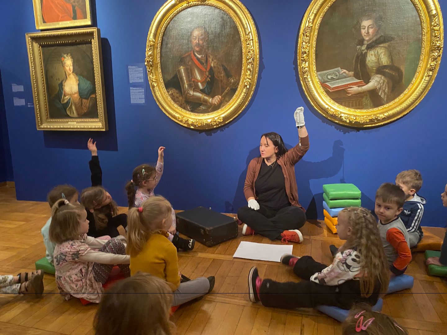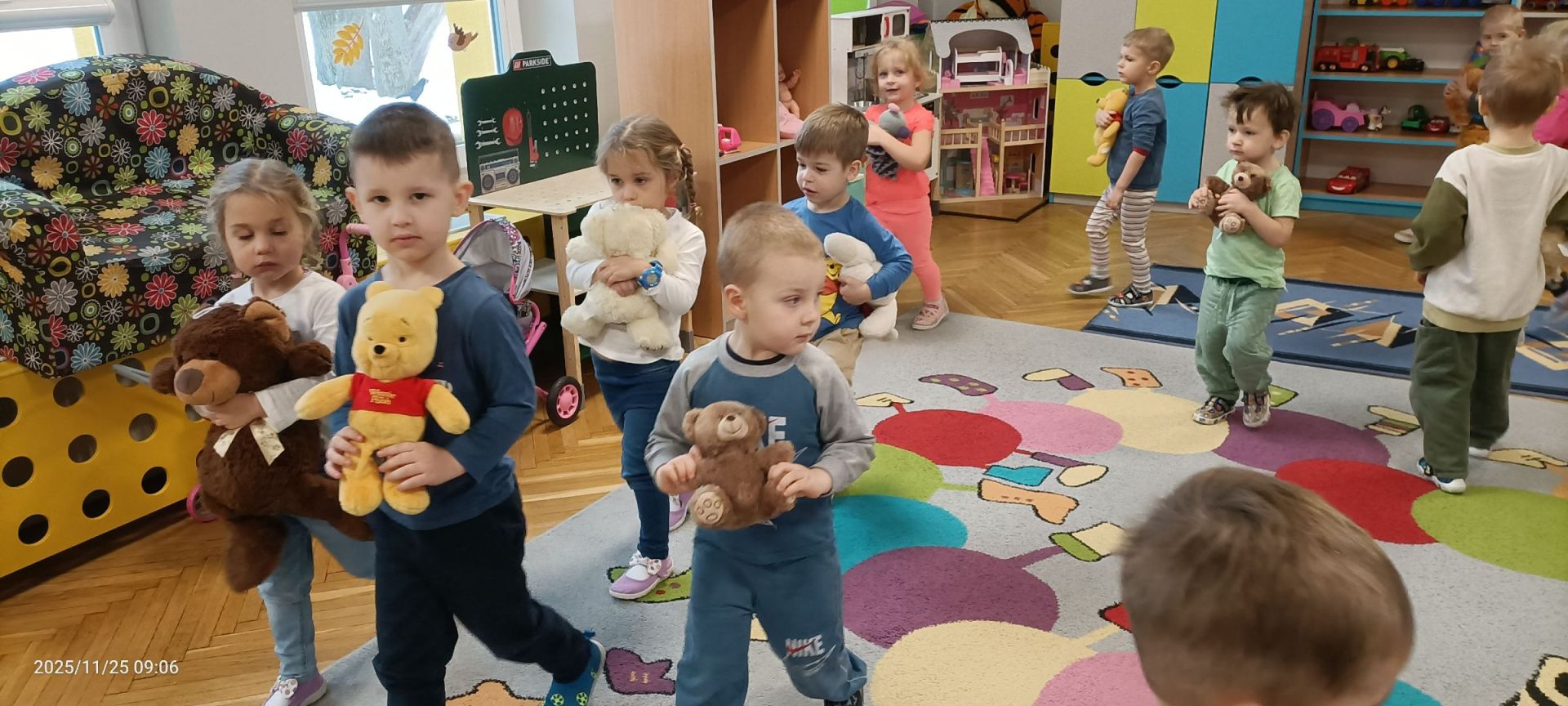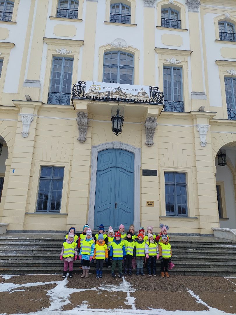 W minionym tygodniu Puchatki udały się na wycieczkę do Muzeum Podlasia mieszczącego się w Ratuszu. Celem wyjścia było zapoznanie dzieci ze sztuką , rozwijanie ich zainteresowań i wrażliwości estetycznej. Po przybyciu na miejsce grupa została przywitana przez pracownika muzeum, który poprowadził krótką, przystępną dla najmłodszych prelekcję. Dzieci dowiedziały się, czym jest muzeum, jakie skarby można w nim znaleźć oraz jak należy zachowywać się w przestrzeni wystawowej. W trakcie opowieści przedszkolaki mogły zadawać pytania, dzięki czemu prelekcja była dla nich ciekawa i angażująca. Następnie grupa udała się na zwiedzanie galerii, gdzie miała okazję obejrzeć różnorodne obrazy prezentowane na wystawie. Dzieci z zainteresowaniem obserwowały kolory, kształty oraz przedstawione sceny. Szczególną uwagę zwracały na bogate detale dzieł sztuki. Po części zwiedzania odbyły się zajęcia artystyczne przygotowane specjalnie dla grupy. Dzieci otrzymały szkice reprodukcji obejrzanych obrazów i miały możliwość pokolorowania ich według własnego pomysłu. Ćwiczenie to pozwoliło im wyrazić kreatywność oraz utrwalić to, co zobaczyły na wystawie. Przedszkolaki z zaangażowaniem pracowały nad swoimi pracami, które zachwycały różnorodnością barw i pomysłów. Wycieczka do Muzeum Podlasia była dla dzieci wartościowym doświadczeniem, łączącym edukację, kontakt ze sztuką i twórczą zabawę.