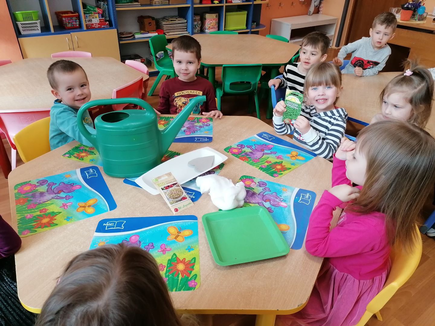 Tygryski postanowiły założyć w sali zielony ogródek. Zgromadziliśmy potrzebne przybory, ziemię i nasiona.Przed przystąpieniem do pracy dzieci poznały warunki potrzebne roślinom do wzrostu.Następnie sieliśmy rzeżuchę, kiełki rzodkiewki oraz sadziliśmy cebulki na szczypiorek.Po zasianiu i podlaniu rośliny zostały umieszczone na parapecie na słoneczku, a dzieci muszą pamiętać o ich podlewaniu i obserwowaniu wzrostu; kiedy wyrosną będą źródłem witamin na naszych kanapkach.
