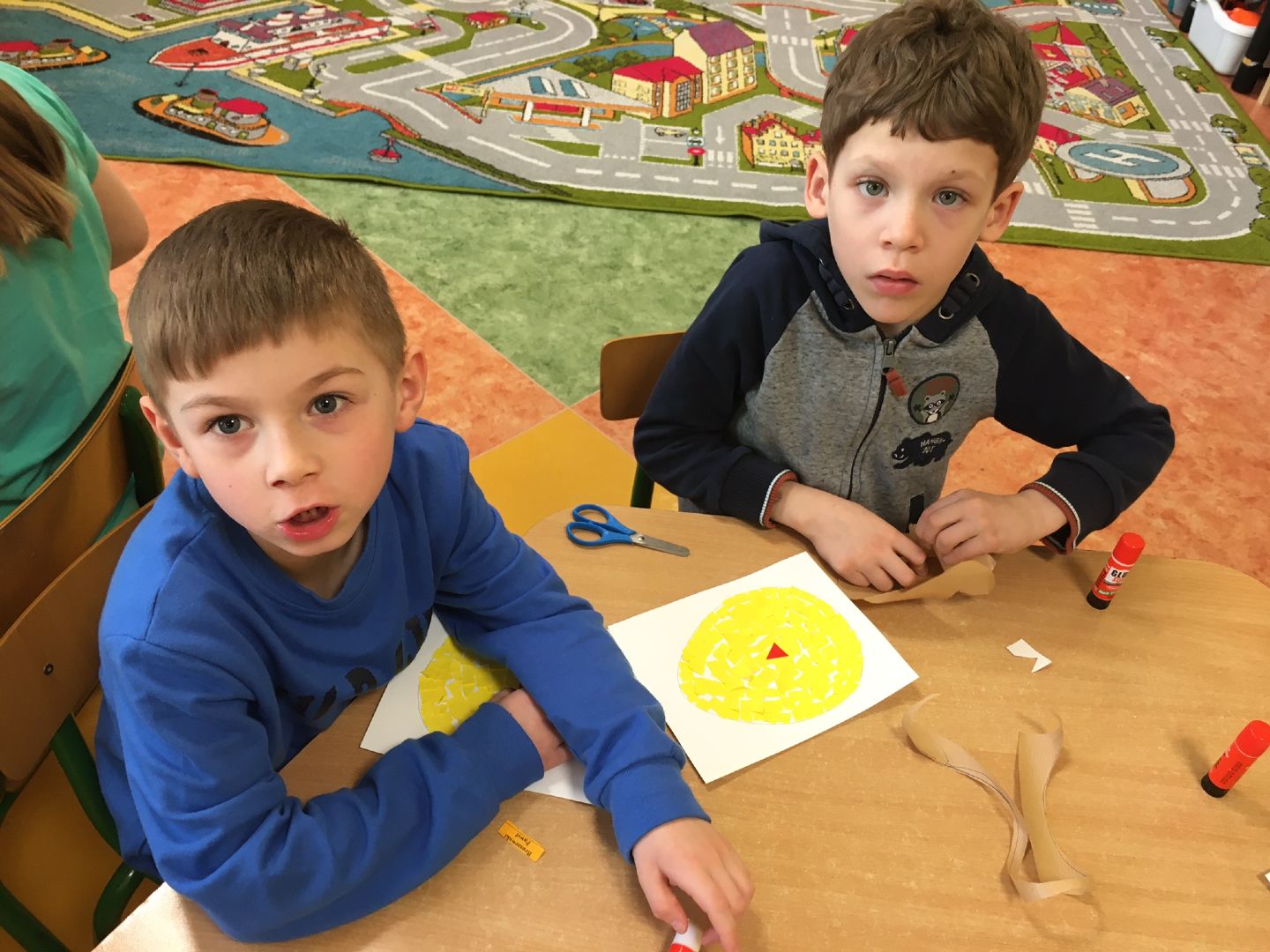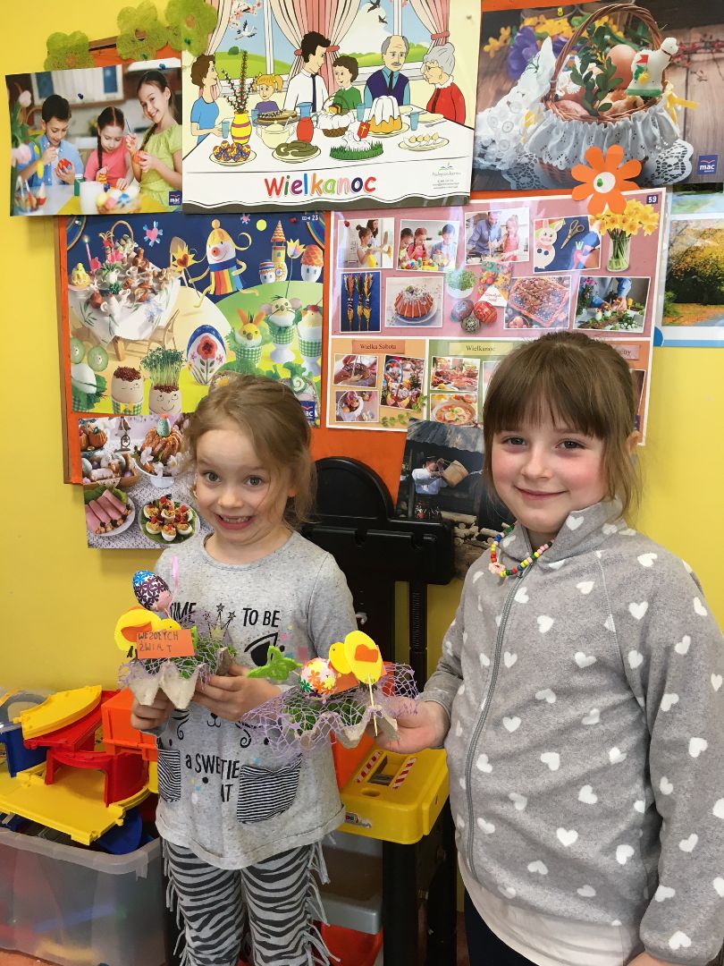 Święta tuż, tuż… Kłapouszki wykonały przepiękne wielkanocne stroiki- ozdabiały styropianowe jajka kwiatami, wycinały kurczaczki i samodzielnie wykonały napis Wesołych Świąt.