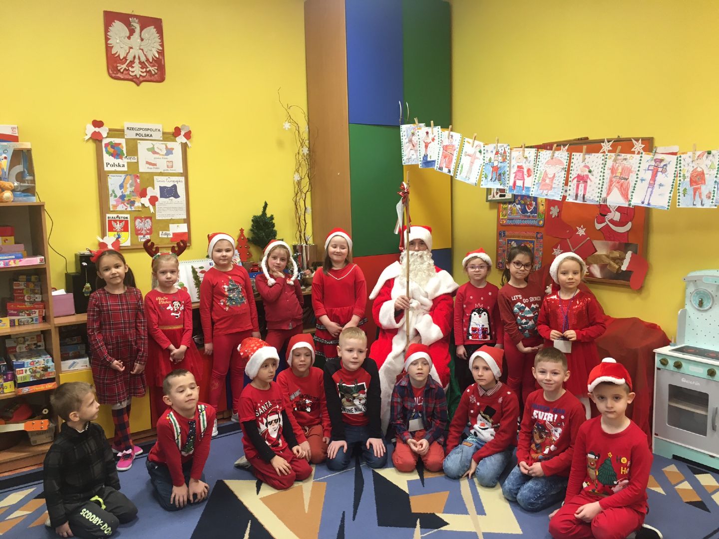 Dzisiaj odwiedził nas Mikołaj. Kłapouszki przygotowały Mikołajowi prezent – była recytacja wierszy, zaśpiewaliśmy piosenkę i każde dziecko wręczyło samodzielnie wykonaną laurkę. W zamian Mikołaj obdarował przedszkolaki prezentami i chętnie pozował do wspólnych zdjęć.
