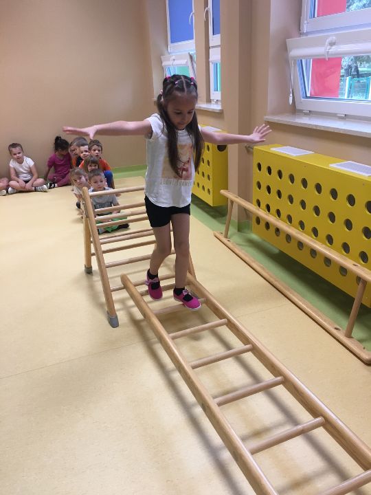 Zajęcia ruchowe w nowej sali gimnastycznej.